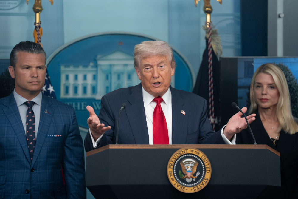 2025年8月11日,美国总统特朗普(中)在华盛顿白宫出席新闻发布会。新华社记者胡友松摄