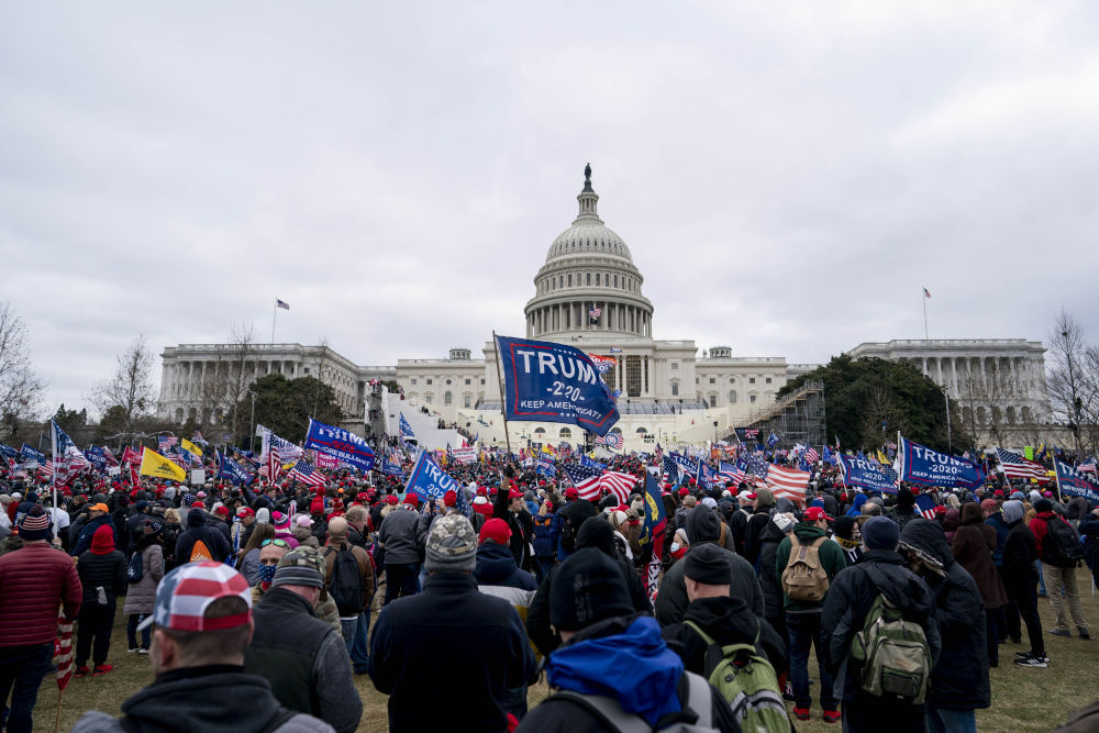 2021年1月6日,在美国国会大厦前,特朗普的支持者举行示威游行。新华社记者刘杰摄